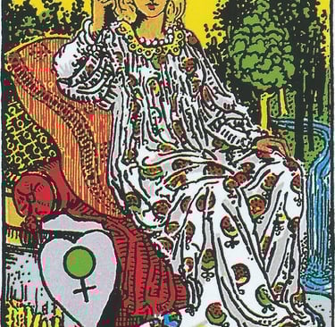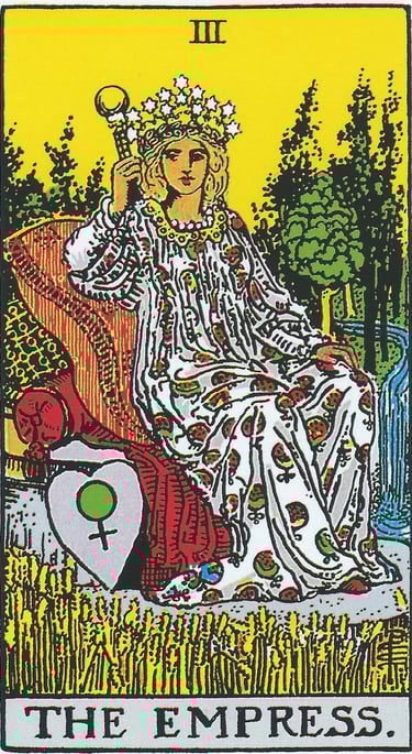 Quando falamos de Marte/Ares, lembramos da carta do Imperador, arcano número 4, que detém a solidez de escolhas que o levam ao trono e está preparado para o combate à qualquer momento. Já Vênus, deusa do amor e da fertilidade, se correlaciona com a carta da Imperatriz, arcano número 3, que aborda o nutrir, a fertilidade, cuidado e amorosidade.