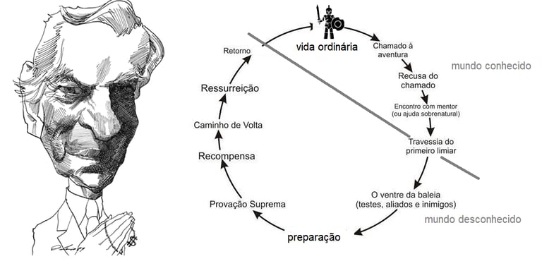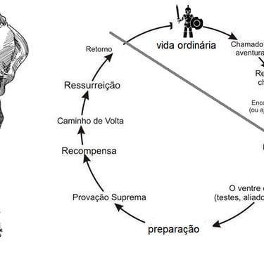 Na jornada do herói, termo esse que surgiu à partir dos estudos antropológicos de Joseph Campbell, ele percebeu que havia um parte de conjectura entre as diferentes civilizações e seus mitos, reforçando sua estrutura de pensamento e através de seus conhecimentos, ele identificou o que ele chamou de monomito - que resumidamente, era um padrão de narrativa, onde a história dos mitos da humanidade se repetiam.